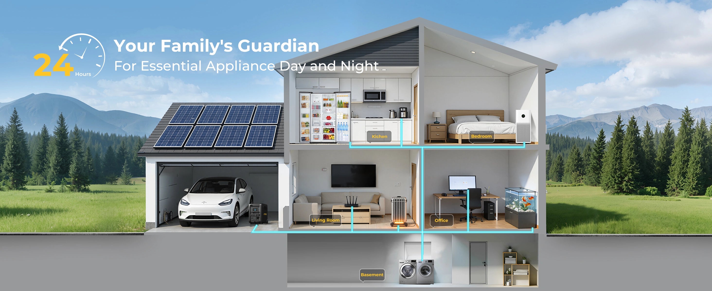 Salida de 4200 W con 120 V: Produce una onda sinusoidal pura estable (sobretensión de 7500 W) capaz de alimentar equipos comerciales y electrodomésticos de alto rendimiento. Cuenta con una conmutación de UPS de <20 ms para respaldo instantáneo de equipos electrónicos sensibles.